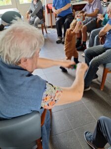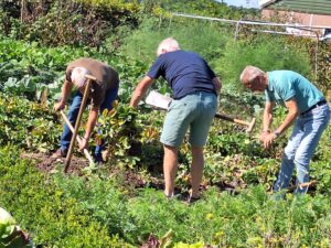 Op de zorgboerderij is er veel aandacht voor voldoende beweging voor onze deelnemers. We starten elke ochtend na de koffie met het rondje over het erf langs alle dieren met alle deelnemers. Er worden verschillende activiteiten in de werkplaats, tuin of rondom de zorgboerderij uitgevoerd. Elke week komt de fysiotherapeut om met de hele groep diverse bewegingsoefeningen te doen. Regelmatig gaat een vrijwilliger samen met een deelnemer fietsen op de duofiets in de omgeving . Na het eten wordt er vaak gewandeld in de omgeving.